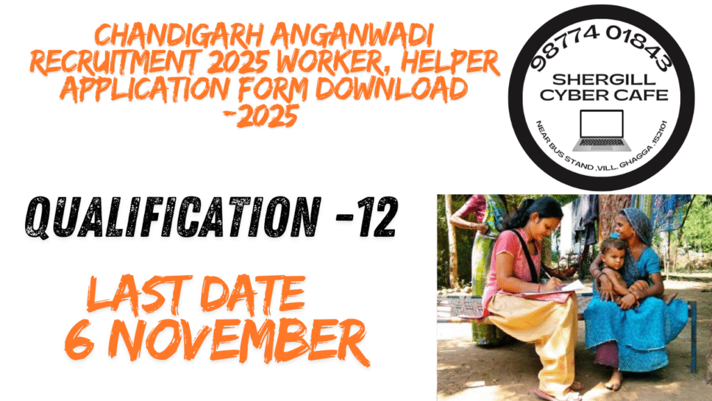 ਸਮਾਜਿਕ ਭਲਾਈ, ਮਹਿਲਾ ਅਤੇ ਬੱਚਾ ਵਿਕਾਸ ਵਿਭਾਗ, ਚੰਡੀਗੜ੍ਹ ਵੱਲੋਂ ਆੰਗਣਵਾੜੀ ਵਰਕਰ ਅਤੇ ਹੈਲਪਰ ਦੇ ਅਹੁਦਿਆਂ ਲਈ ਭਰਤੀ ਸੂਚਨਾ 2025 ਜਾਰੀ ਕੀਤੀ ਗਈ ਹੈ। ਰੁਚੀ ਰੱਖਣ ਵਾਲੇ ਉਮੀਦਵਾਰ 27 ਅਕਤੂਬਰ ਤੋਂ 06 ਨਵੰਬਰ 2025 ਤੱਕ ਆਫਲਾਈਨ ਅਰਜ਼ੀ ਦੇ ਸਕਦੇ ਹਨ। ਅਰਜ਼ੀ ਫਾਰਮ PDF ਰੂਪ ਵਿੱਚ ਉਪਲਬਧ ਹੈ ਅਤੇ ਲੋੜੀਂਦੇ ਦਸਤਾਵੇਜ਼ਾਂ ਸਮੇਤ ਨਿਰਧਾਰਤ ਆੰਗਣਵਾੜੀ ਕੇਂਦਰ ਵਿੱਚ ਜਮ੍ਹਾਂ ਕਰਵਾਉਣਾ ਲਾਜ਼ਮੀ ਹੈ। ਕੋਈ ਫੀਸ ਨਹੀਂ ਲੱਗਦੀ। ਉਮੀਦਵਾਰ ਘੱਟੋ-ਘੱਟ 12ਵੀਂ ਪਾਸ ਹੋਣੇ ਚਾਹੀਦੇ ਹਨ ਅਤੇ ਸਥਾਨਕ ਨਿਵਾਸ ਸਬੂਤ ਹੋਣਾ ਲਾਜ਼ਮੀ ਹੈ। ਇਹ ਭਰਤੀ ਬੱਚਿਆਂ ਦੀ ਭਲਾਈ ਅਤੇ ਸਮਾਜਿਕ ਵਿਕਾਸ ਵਿੱਚ ਸਰਕਾਰੀ ਨੌਕਰੀ ਦੀ ਚੰਗੀ ਮੌਕਾ ਹੈ।